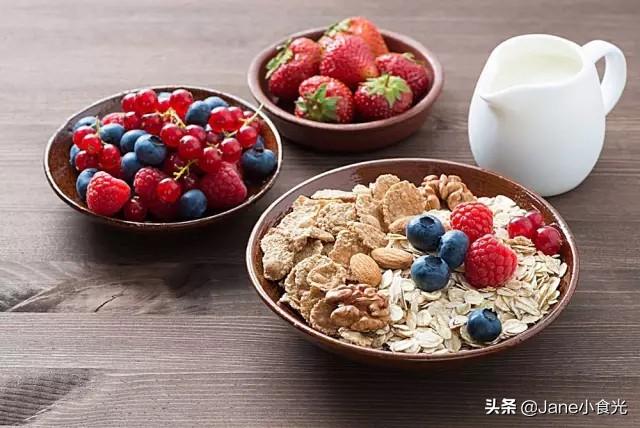5,麦片,牛奶,水果。可以用牛奶煮麦片,或者开水冲泡,搭配吃点水果。如果是即食的水果麦片,可以用酸奶直接泡了吃,搭配坚果,
